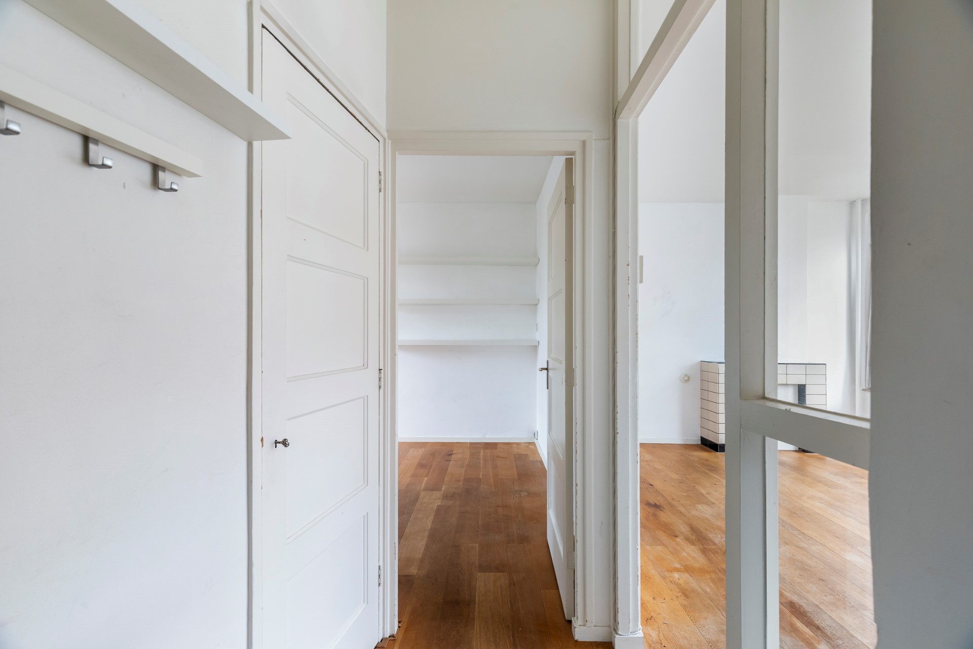 Bij binnenkomst wordt u verwelkomd in een ruime hal die direct een gevoel van overzicht en comfort geeft. Vanuit hier bereikt u de woonkamer, die dankzij de grote ramen heerlijk licht is en uitkijkt over de levendige straat. De ruimte is groot genoeg voor zowel een gezellige zithoek als een eethoek, en vormt daarmee het kloppende hart van de woning.