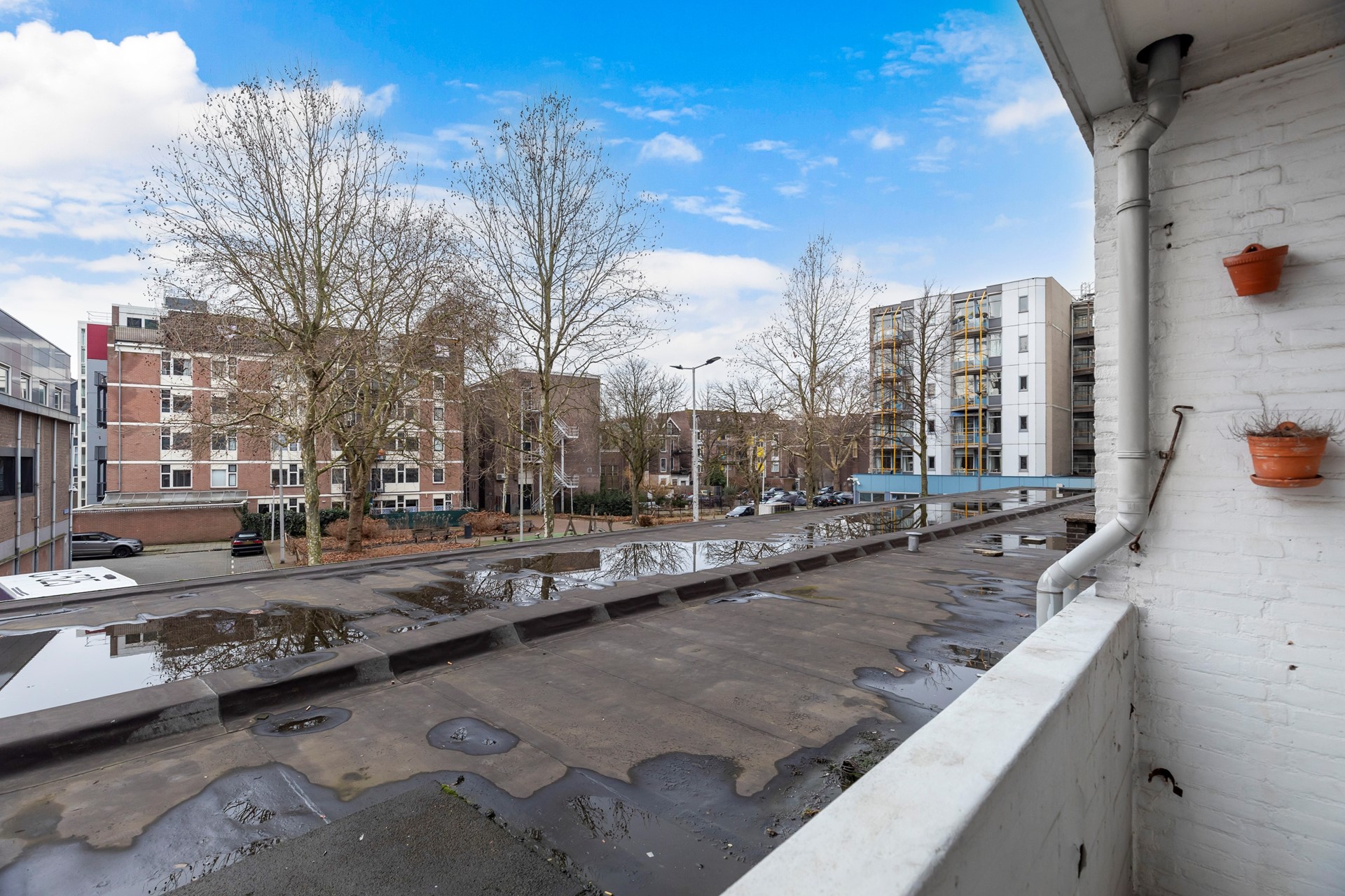 Aan de achterzijde vindt u een balkon op het Zuidwesten, waar u kunt genieten van de middag- en avondzon. Dit is een waardevolle plek om even te ontsnappen aan de stadse drukte, of het nu gaat om een kop koffie in de ochtend of een glas wijn aan het einde van de dag.